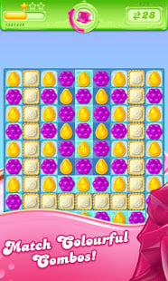 An unstoppable game that spreads jelly and fun! The new Candy Jelly Saga features fun game modes and features that allow you to take on the Jelly Queen! Play as Jenny and show off your jelly power by taking turns swapping candies with the Jelly Queen. You'll have to spread as much jelly as possible with each move, and whoever releases the most jelly will win the sweet victory!