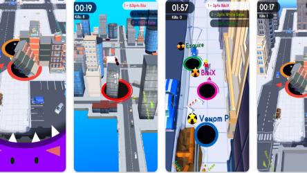 To control the black hole, players use intuitive touch controls. By swiping on the screen, they can move the black hole around the city, navigating through streets and open spaces to find objects to consume. The game also introduces a competitive element by enabling players to interact with each other. Larger black holes can consume smaller ones, adding a strategic element to the gameplay. Players must decide whether to focus on consuming objects or take risks to eliminate rival black holes and steal their points.