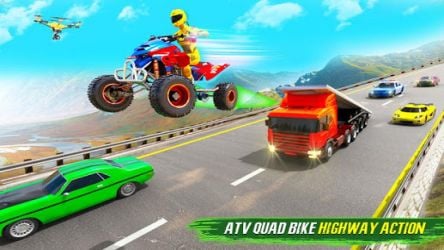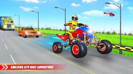 Speed up and get your real quad bike game engine roaring for the most insane light weight road racing game experience. Experience the thrill of light weight quad bike racing games and race based ATV bike games to perform ATV crazy stunts on the road in quad bike games. Race on real quad bike simulator, tricky light weight atv bike and off road ATV manic stunts in quad bike traffic racing can save your bike simulator from other road racing and light bike driving simulator in motorcycle racing. Play motorcycle driving simulator and have more fun in motorcycle games and motorcycle racing simulator. ATV bike rider four player game is risky on road courses as it is challenging two way roads with traffic coming from opposite directions. Speed up the bike TV games to go beyond the imagination and conquer the highway traffic riders in highway games. Monster Atv Quad bike rider game has nothing to do with off-road or any tough adventure quad bike game but with endless bike riding and bike racing game missions related to typical highway atv quad bike racing transportation vehicles.