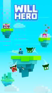 We present you the Adventure Portal - your entrance to the far lands of the Will Hero world, filled with fascinating adventures, new dangers and priceless treasures! Will Hero is an arcade, action, platformer and rogue-like in one game.This is an exciting adventure, in which you can dive in any place and at any time!When Princess gets in trouble, a REAL hero turns into unstoppable maul and makes his way with bombs, kicks and axe.Make a tap to perform a dash, evade or attack.Master a sword, push your way through with hefty kicks, bombs, throwing knives and axes. Improve weapons by increasing their lethal force.Build a high tower, open a lot of devastating combat spells.Find dozens of helmets for your hero, among which there are brutal helmets: knight, prince, crusader, viking, dragon; and cute: Cat, Dog, Unicorn, Panda, Raccoon, Chicken, Hog and many, many others.Explore dungeons and different game worlds.Find rare and legendary chests containing unique helmets.Will Hero is not just a timekiller, it's an exciting arcade, action and platformer, which can be played with only one finger.The game works without the Internet, it is enough to join and it will blow your mind.Play anywhere and anytime!Compete with friends and become a hero!